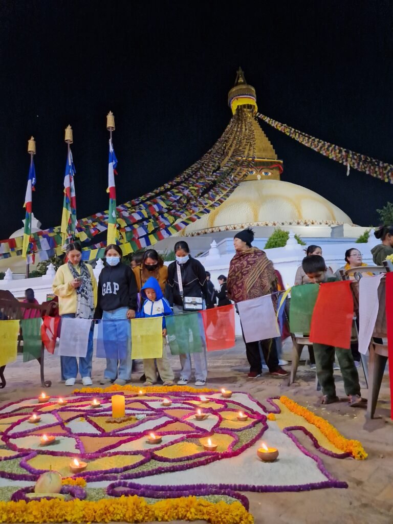 Cada dia, l’estupa de Boudha, a Katmandú, rep milers de pelegrins que s’hi acosten per dur a terme les seves pràctiques rituals. Budistes del Butan, de Tailàndia, Hong Kong, Taiwan, Índia o la Xina. Però, sobretot, l’espai es converteix en un centre social de meditació pels 40 mil budistes tibetans instal.lats al barri de Boudha que, fa 50 anys, varen creuar la frontera tibetano-nepalesa per fugir de la invasió i persecució xinesa. Dos són els moments “d’hora punta” on l’activitat al voltant de l’estupa es multiplica: entre les cinc i les sis del dematí i entre les quatre i les cinc de la tarda. És llavors quan el monument es converteix en el centre de trobada i socialització, on petits col.lectius de totes les edats donen voltes mentre fan girar les rodes d’oració i reciten mantres.