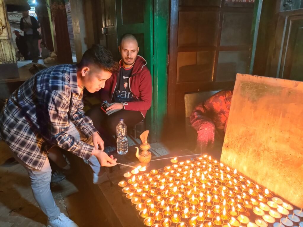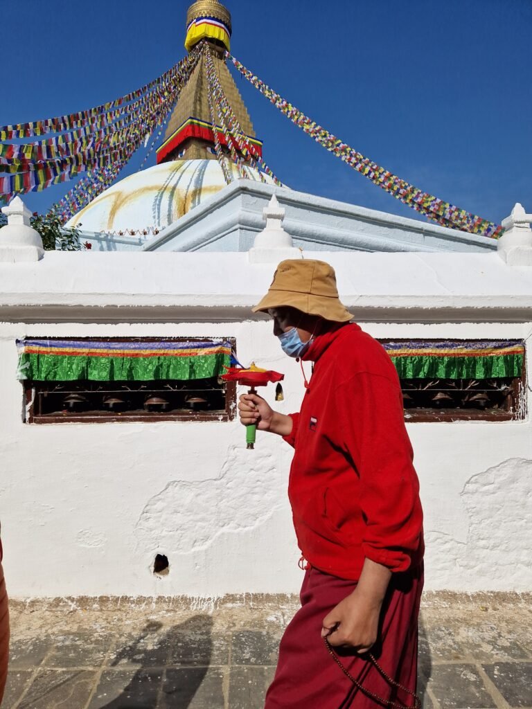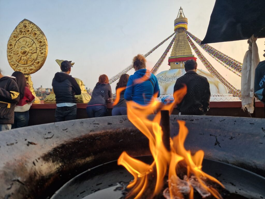 Són les quatre de la matinada i, mentre els galls ni es plantegen obrir el bec, els gongs i les campanes comencen a repicar dins l’escampall de monestirs del barri de Boudhanath, a Katmandú. Aquí són els monjos els qui fan la funció dels galls i, mitja hora més tard, els més de 200 metres de diàmetre de l’estupa, monument que conté les relíquies d’importants lames i centenars de textos sagrats al seu interior, s’omple de budistes que fan la seves oracions mentre giren al seu voltant.