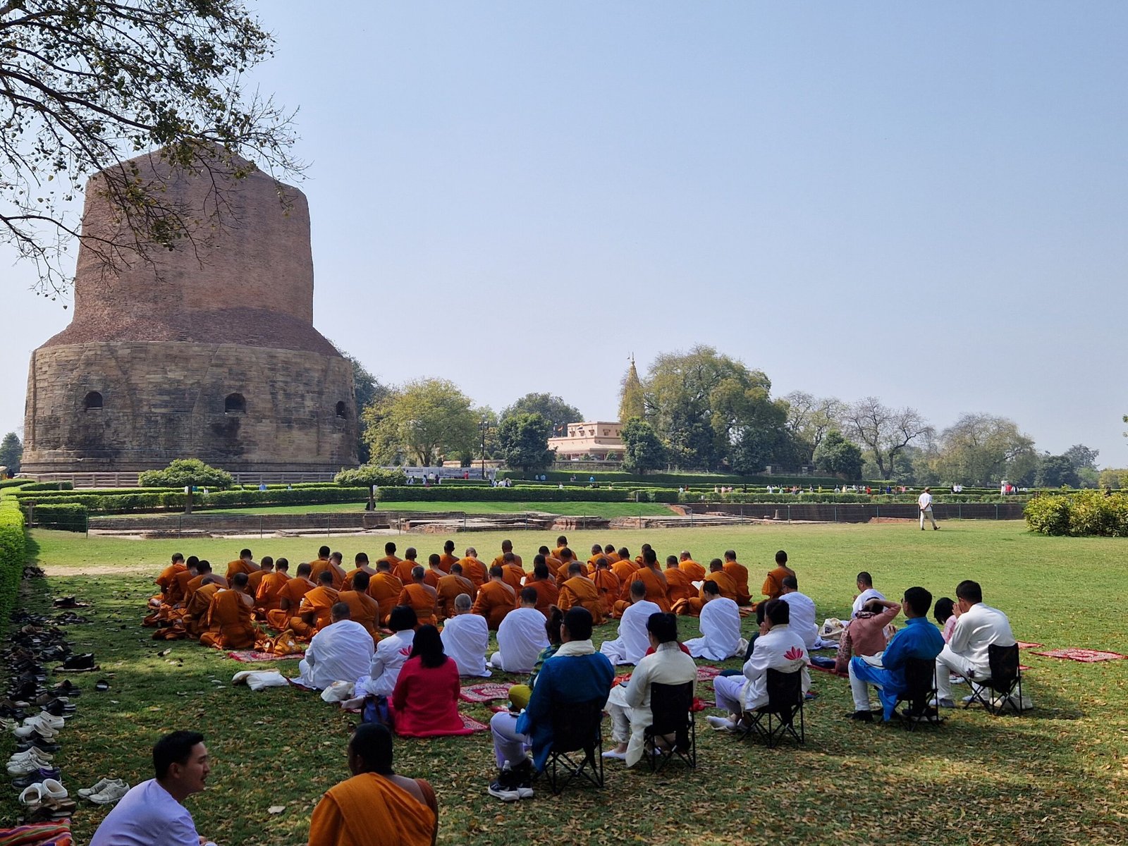Unes setmanes després d’assolir la il·luminació, el Buda es va retrobar amb els 5 companys que l’havien acompanyat durant els anys de recerca i experimentació, previs a la il·luminació. És precisament aquí, a la localitat de Sarnath, a 250 quilòmetres de Bodhgaia, on fa girar la roda del Dharma per primera vegada. El lloc es coneix com a parc dels cèrvols i és on va fer el seu sermó sobre les 4 Nobles Veritats.